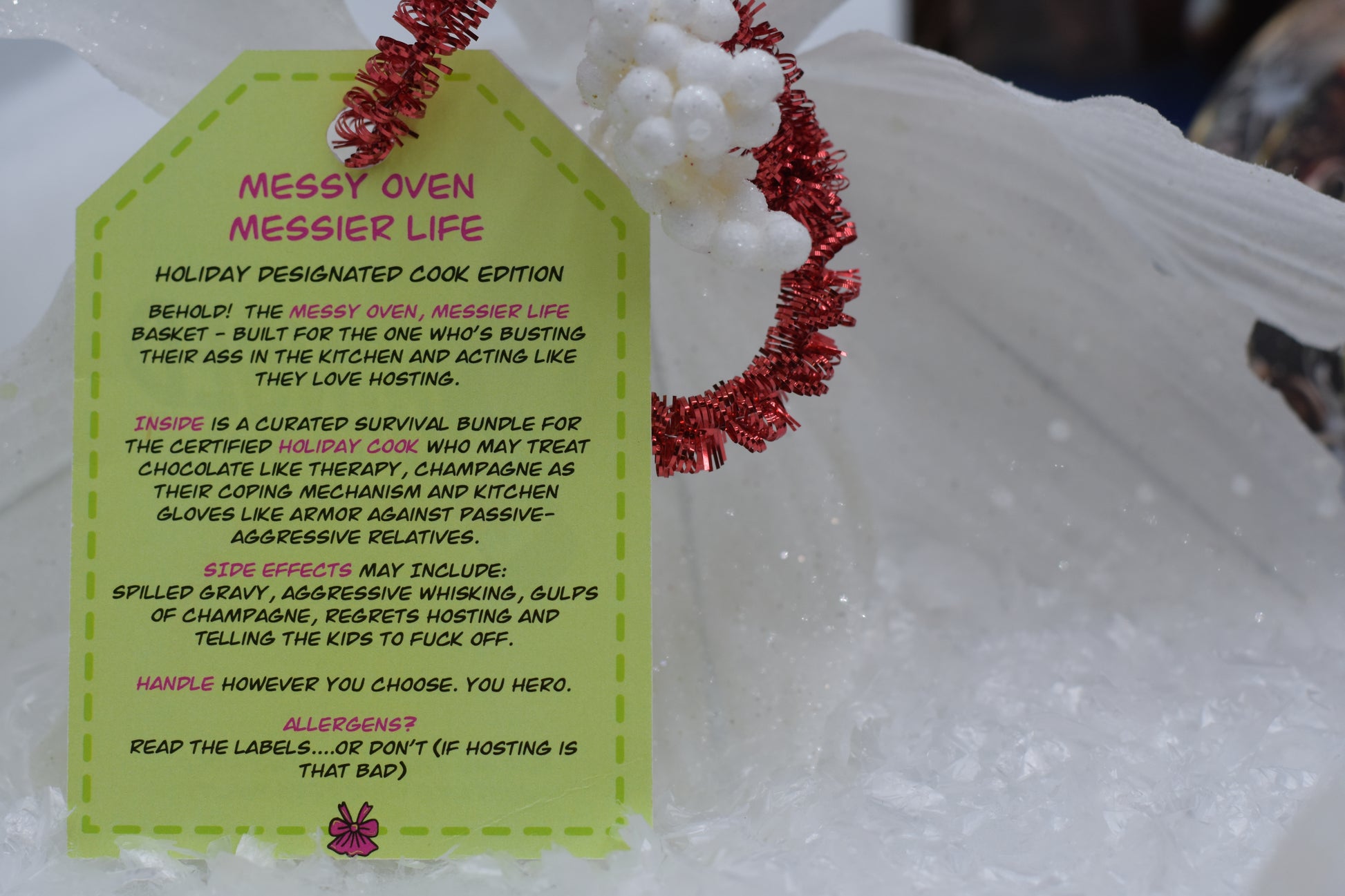 Behold! The Messy Oven, Messier Life gift basket - built for the one who’s busting their ass in the kitchen and acting like they love hosting!